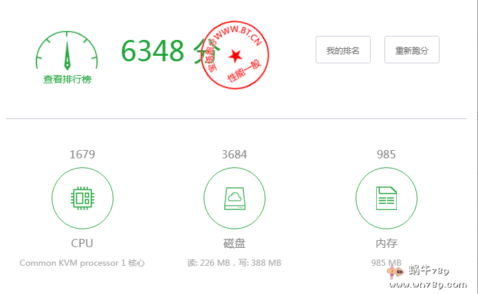 6、装个宝塔Linux面板跑个分看看。1核1G内存的配置,得分6000+算不错了。