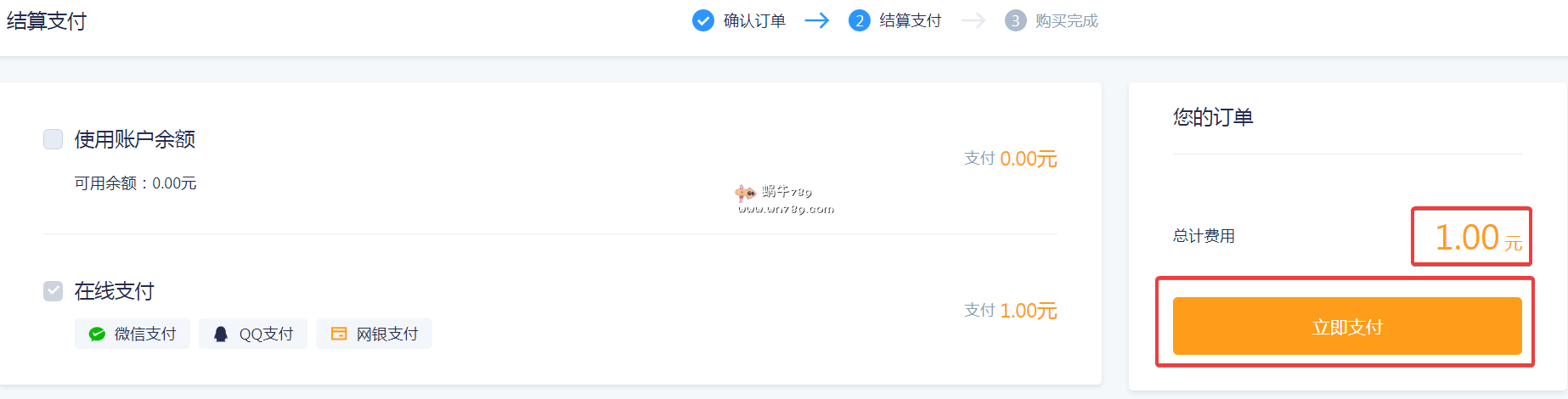 2、结算时如下图显示是1元,表示是正确的,如果不对请关掉DNSPod页面并且重启浏览器,然后再