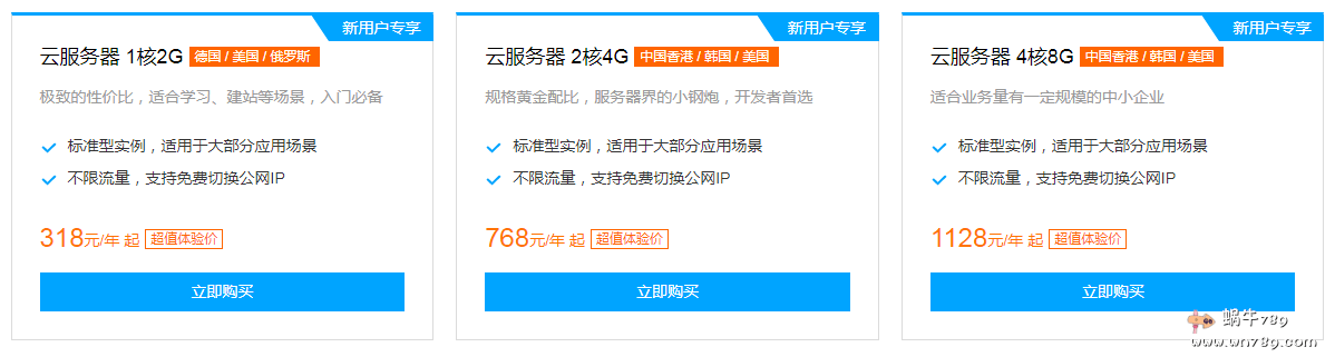 新用户专享方案一共只有三款,每个新用户只能3选1,有韩国云服务器、俄罗斯云服务器需求的只能在这个活动当中选购。如果不限定这两个地方的,可以往下面看。