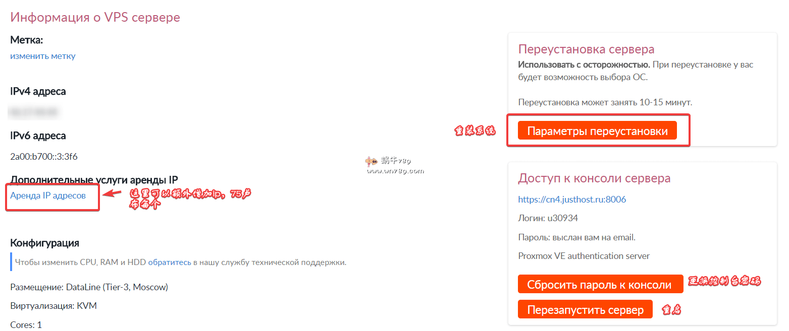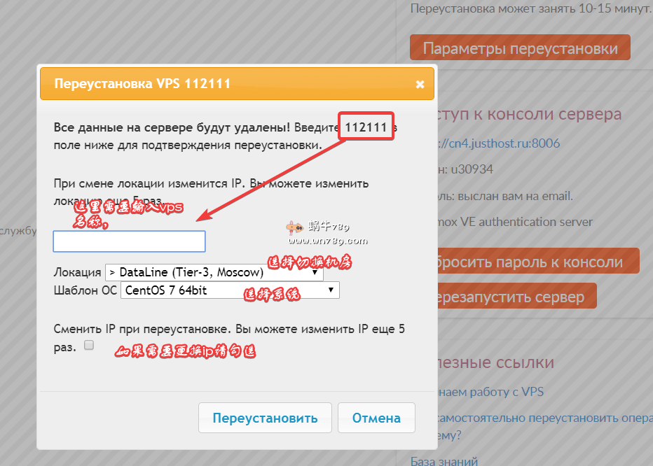 更换IP、切换机房操作如下。每台vps只有5次机会。切换机房是必换ip的,而且不会保留数据。