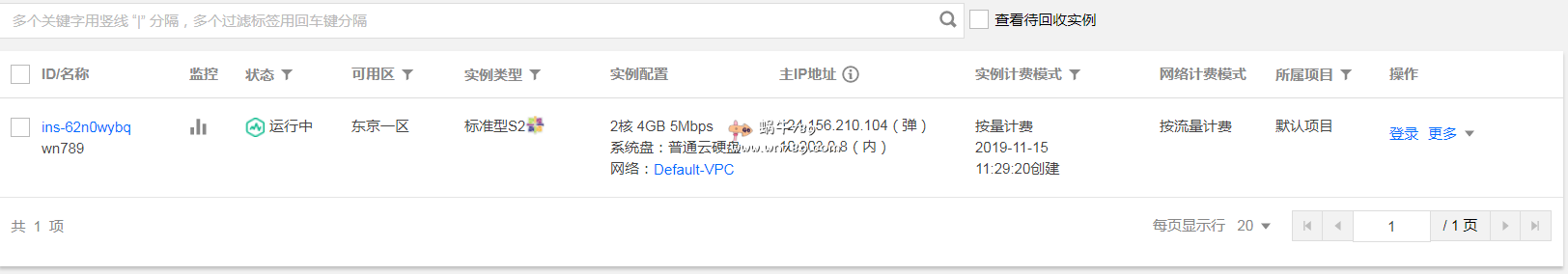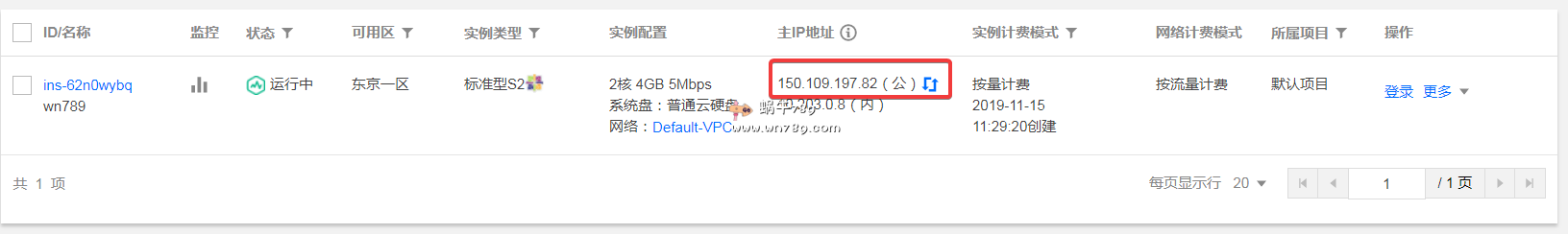 解绑后ip就发生变化了,有原来的124.156.210.104变成了150.109.197.82。