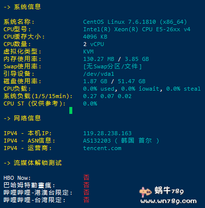 今天蜗牛也开通了一台腾讯韩国云服务器产品,选择的是2核4G内存的标准型方案、5Mbps带宽,具体速度怎么样大家可以参考下面的测评记录。测试前蜗牛已经为自己开通的韩国云服务器启动了BBRplus内核加速优化,如何提升Linux系统服务器的网络利用率,大家可以参考此文章:#脚本分享#使用Linux网络优化加速一键脚本快速为VPS提速[一键安装Lotserver(锐速)/BBR/BBR魔改版/暴力BBR魔改版],此脚本可以一键启用BBR加速、BBR魔改版加速、暴力BBR魔改版加速、BBRplus版加速、Lotserver(锐速)加速等多个版本。下面我们一起来看看腾讯云腾讯云韩国服务器测评,腾讯云韩国服务器速度怎么样?腾讯云韩国服务器到国内速度好不好?腾讯云韩国服务器适不适合稳定建站? 从下面测试结果来看,总体来说腾讯云韩国服务器在国内访问速度方面还是非常不错的,电信联通去程KT、回LG,移动往返从香港出、走LG线路,国内三网平均延迟80毫秒以内,稳定建站完全可以满足!!! 1、腾讯云韩国云服务器基本信息及网络信息测试。