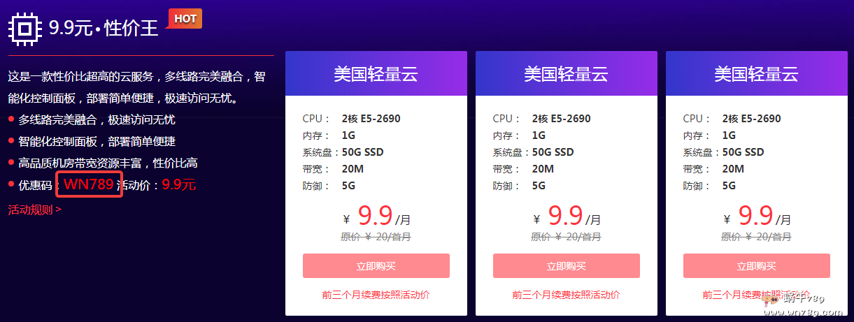 - 1、 宏讯云服务器活动特价9.9元机限每位客户购买一次。