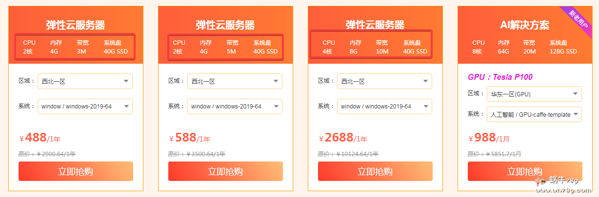 下面三款弹性云服务器方案适合新用户下手,虽然老用户也可以参与、但是需要先邀请一位新用户成功购买促销云产品后才可以享受购买资格。新睿云服务器促销方案配置设置是非常合理的,2核4G内存方案是大家需求量最大的配置了。喜欢的直接上车吧。