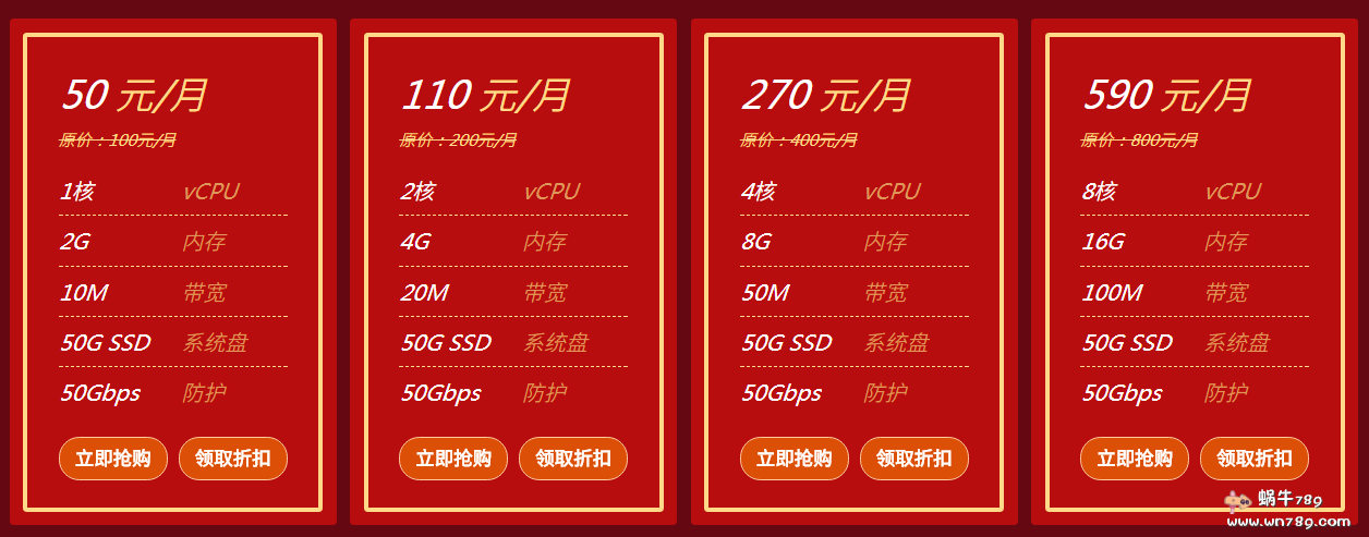 磐石云元旦促销的两款爆款云服务器产品默认给的只有2Gbps防御,如果你对高防云主机有需求,磐石云此次元旦也有促销活动,默认提供50G防御的高防云主机低至五折。适合需要高防建站、游戏高防等业务。