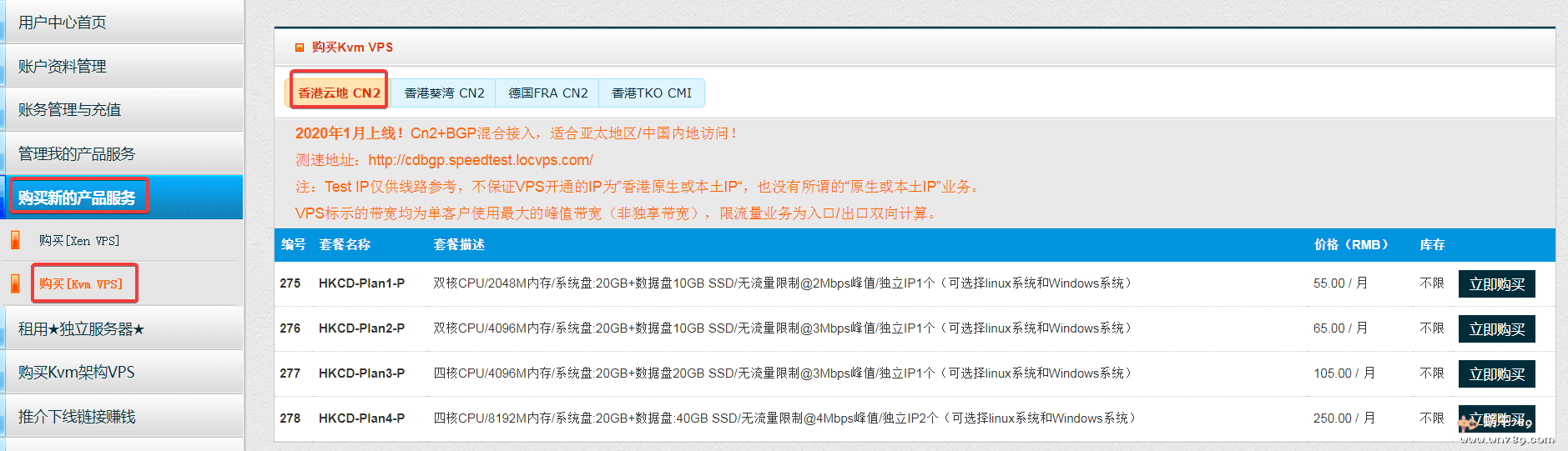 下面是新上线的香港云地cn2 vps服务器,均支持Linux、Windows系统。| CPU | 内存 | 硬盘 | 带宽 | 流量 | 架构 | IPv4 | 价格(月) | 购买 |