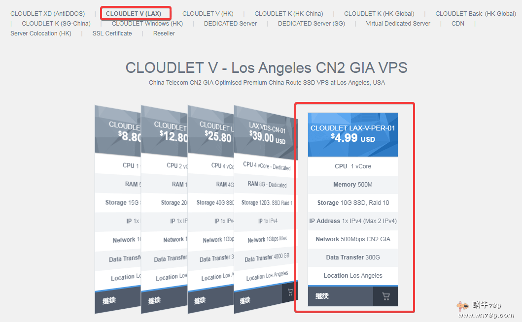 GigsGigsCloud在2020年农历新年前夕推出了一款美国洛杉矶CN2 GIA直连线路的特别配置方案,1核500M内存、500Mbps峰值带宽、300G月流量(年付订单免费升级到500GB)、月付4.99美元、年付49.99美元!目前GigsGigsCloud美国VPS系列产品对此款特价便宜的美国CN2VPS再次进行了补货,限量50台,先到先得。