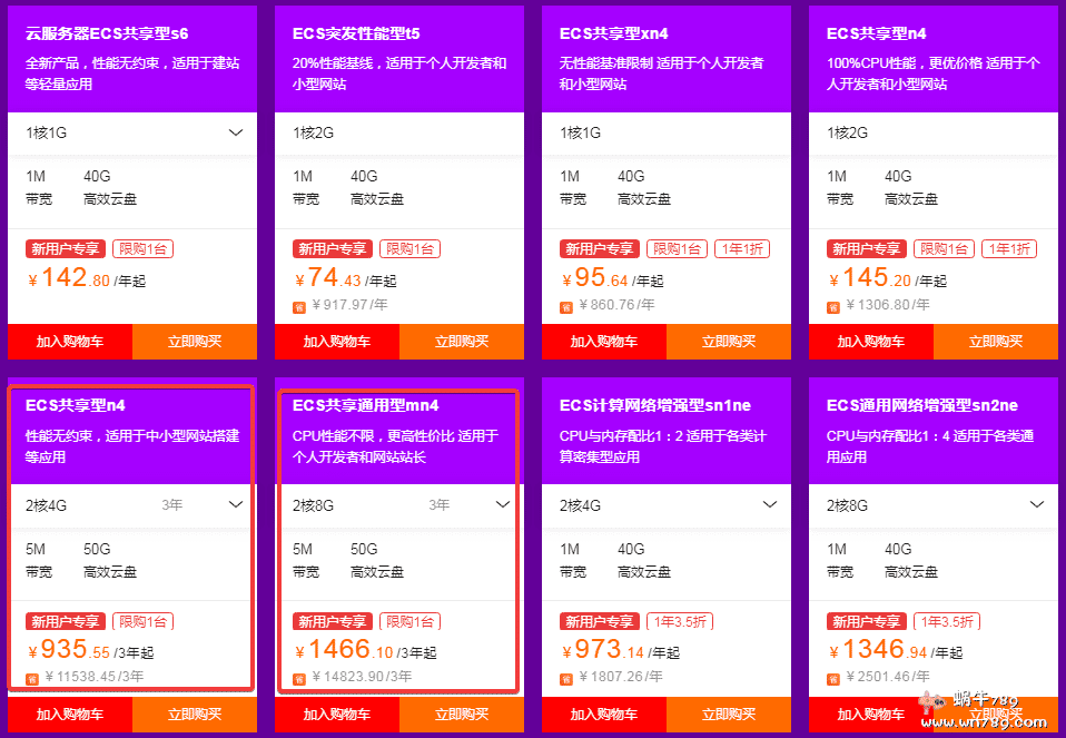 - 100%性能基线ECS共享计算型n4云服务器:2核4G5M、1年3328元、2年748元、3年997元。企业认证