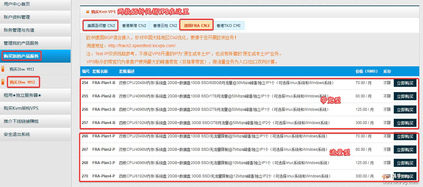 LOCVPS此次限量促销的是CN2直连线路VPS,有美国圣何塞CN2 VPS、德国法兰克福CN2 VPS可以选择。- 美国圣何塞CN2测速:http://ussj.speedtest.locvps.com
