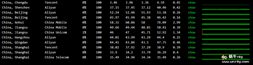 2、国内电信、联通、移动丢包及抖动测试。稳定性杠杠的,测试过程当中仅联通有一个丢包。