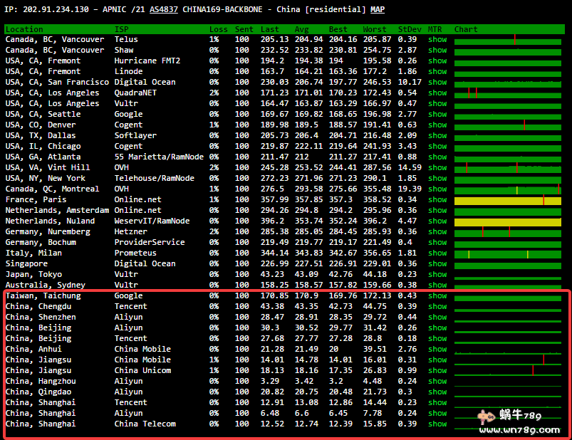 | 全部 | 129 | 浙江杭州(阿里云) 2.9 毫秒 | 新疆乌鲁木齐(天翼云) 80.1 毫秒 | 28.6 毫秒 |