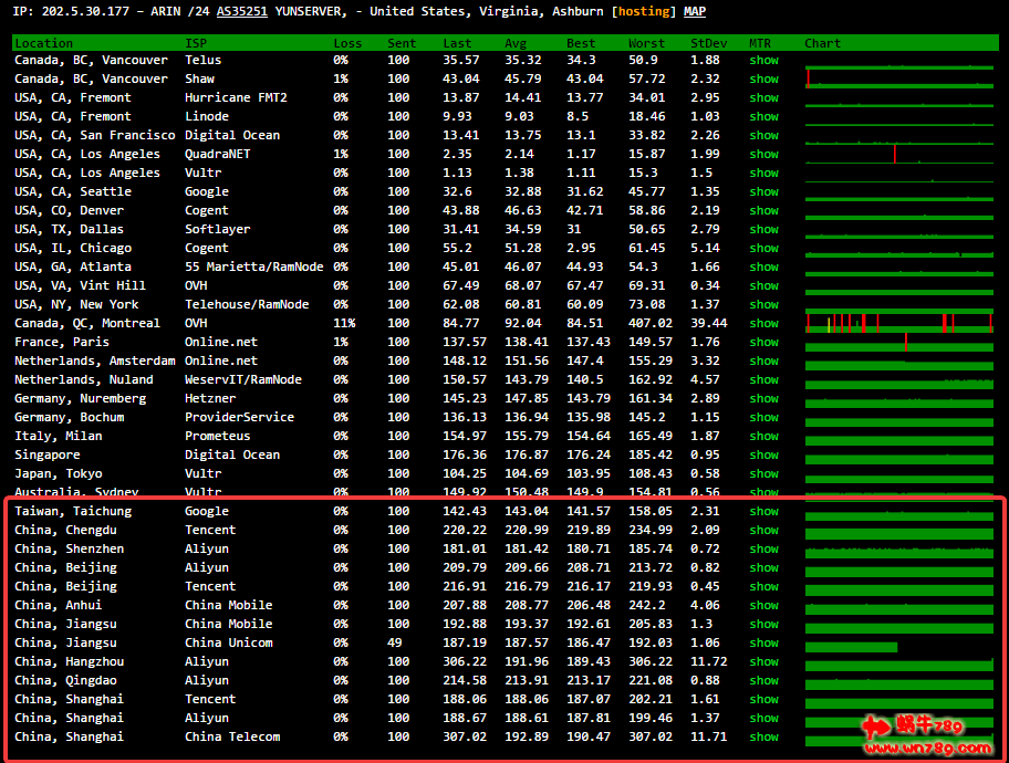 12 139.226.208.206 167.61 ms AS17621 中国 上海 联通