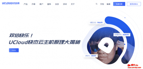 本次促销的机型如下,大家可以在四款里面任选一款,每个人只能购买一台,所以一定选择好配置了。选购时需要注意的事项:1核2G为100%性能的企业级云主机,其他型号均为Intel版快杰型云主机!目前可选机房有:北京二E/上海二C/广州B(广州B 不含1核2G)!建议大家注册新账号参与活动。 UCloud优刻得云主机销售价格总体来说是比较实惠的了,目前国内主流商家当中1核2G内存给2M带宽的云服务器只需88元首年是比较少的了。而且2核4G内存140G硬盘5M带宽的黄金配置价格也是非常美丽了,三年仅需1398元,个人、企业建站的最佳选择。 如果你的业务需要海外免备案云服务器产品,UCloud优刻得当前也有1折促销活动,全球15大机房参与促销:UCloud海外云服务器1折,香港/台湾/东京/首尔等全球15机房,10M无限流量,1核1G仅450元/3年起!