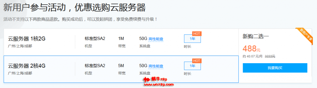 年中钜惠活动当中,还有一个针对新用户的云服务器促销活动,1核2G内存1M带宽95元/1年、2核4G内存5M带宽488元/1年!仅支持二选一!