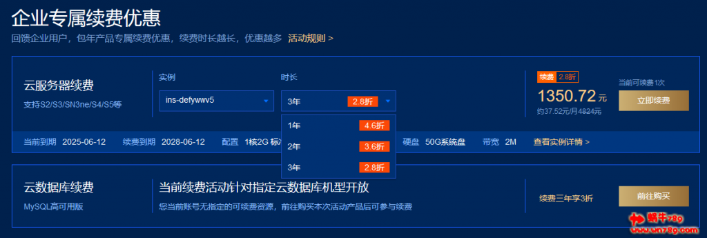 老用户续费活动不仅仅局限于企业用户,全体腾讯云实名认证的用户只要有可以参与续费活动的产品都可以享受!最高可以享受2.8这人续费活动!活动到期时间是6月9日。
