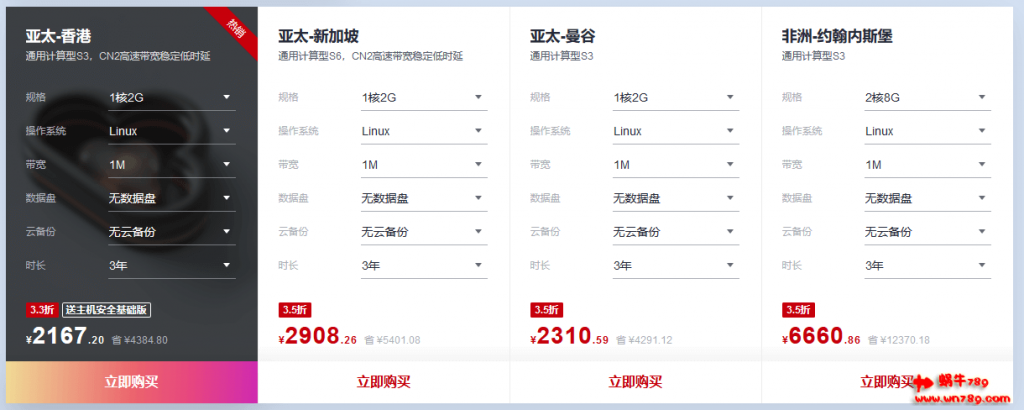 下列产品不限制新老用户,老用户也可以上车!1年3.8折起,3年3.3折起!相比新用户可选配置更为丰富,有1核2G、2核4G、2核8G、4核8G、4核16G、8核16G可以选择,能自由搭配1M、2M、5M、10M带宽!