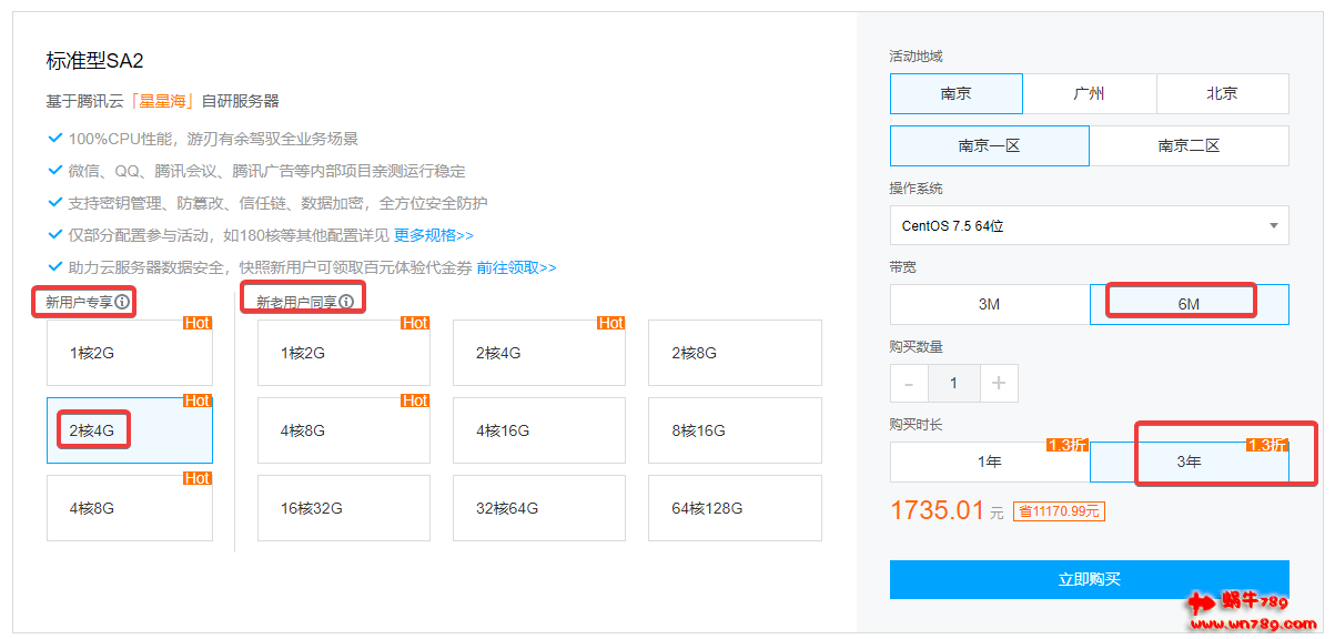 直达链接:点击直达腾讯云星星海SA2云服务器选购页面