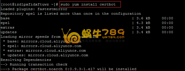 3、安装完成后,再依次执行下面命令申请Let's Encrypt SSL。
