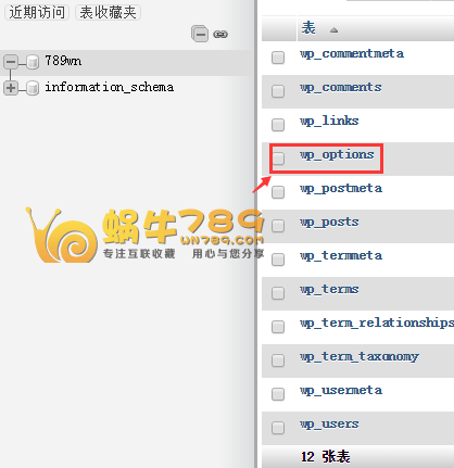 1、其实解决办法很简单,大家打开你的数据库控制面板,找到数据库中的“wp_options”数据表,点击进入。