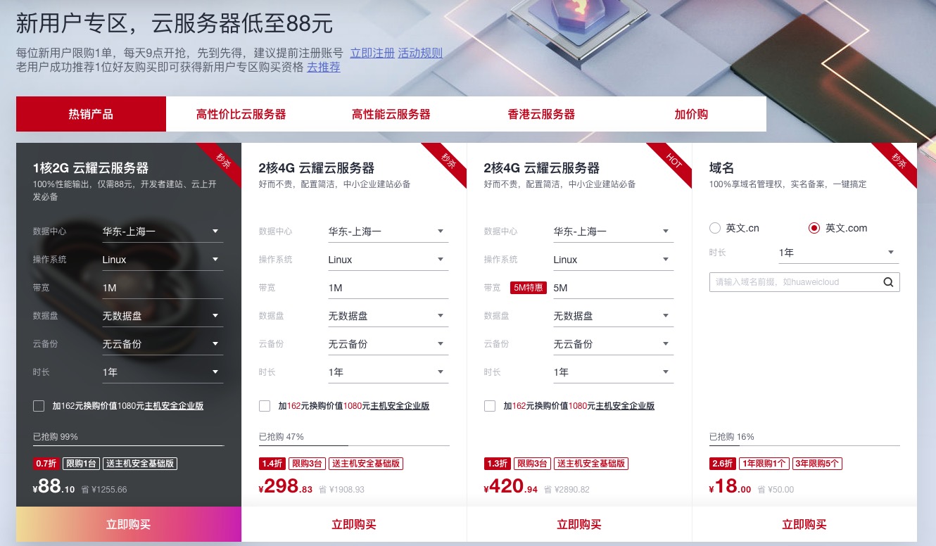 一、1核2G 1Mbps 云耀云服务器 88元/年 原价:1255.66