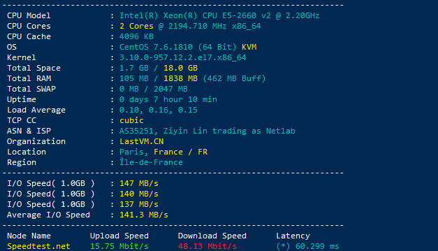 本次测试机器采用:GIA-B型(2H2G)数据均为实测,测试IP45.158.22.249- 基本信息Io测速等