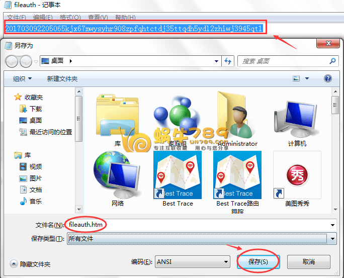 7、制作fileauth.htm文件。把上图中的文件内容复制到一个记事本内,然后点击“文件”选择“另存为”fileauth.htm。