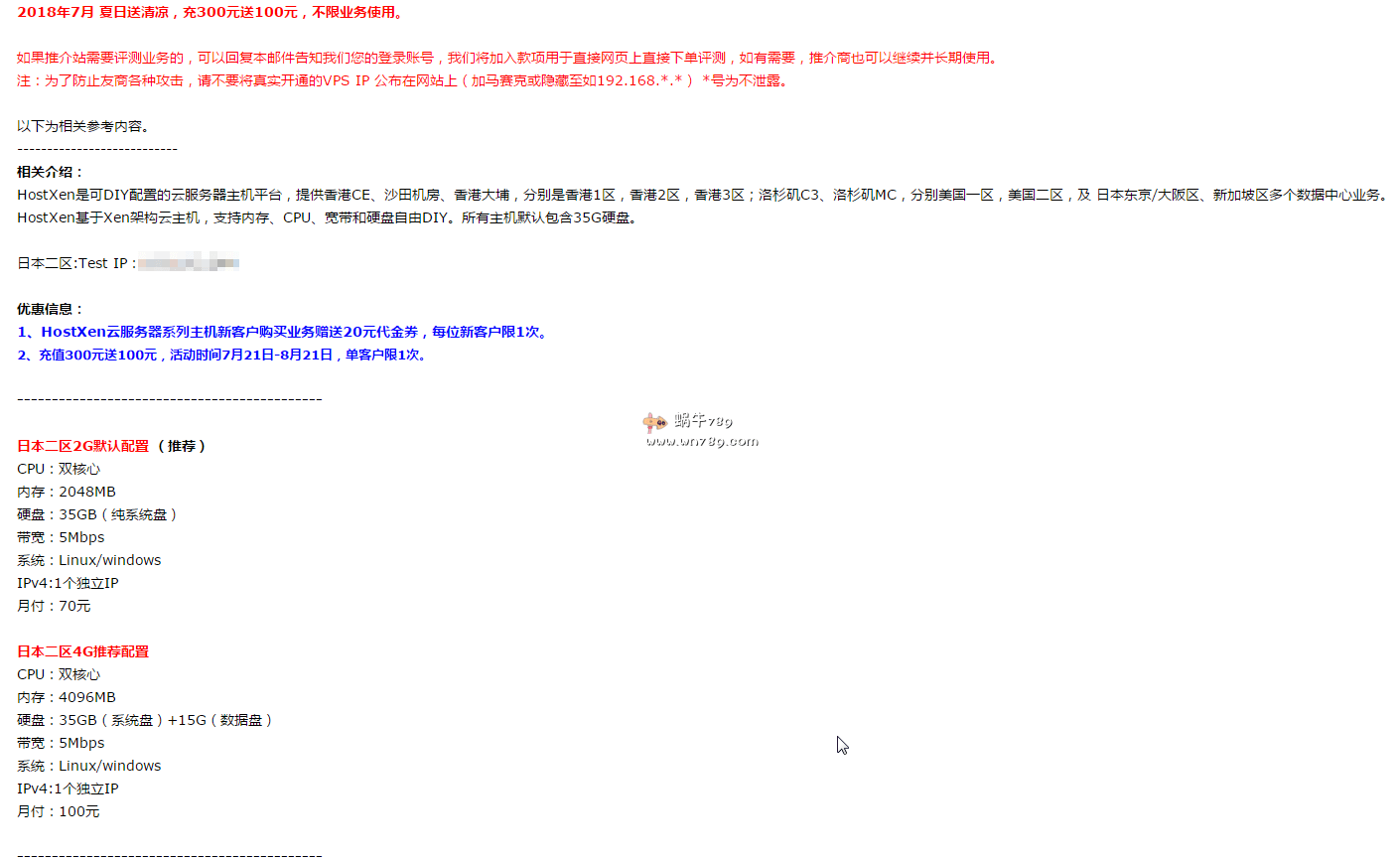 3、请提供机房测试IP及用户服务条款(TOS/AUP)地址。如果能提供测试机器将发布简单测评,测试机器开通时间15天-30天。