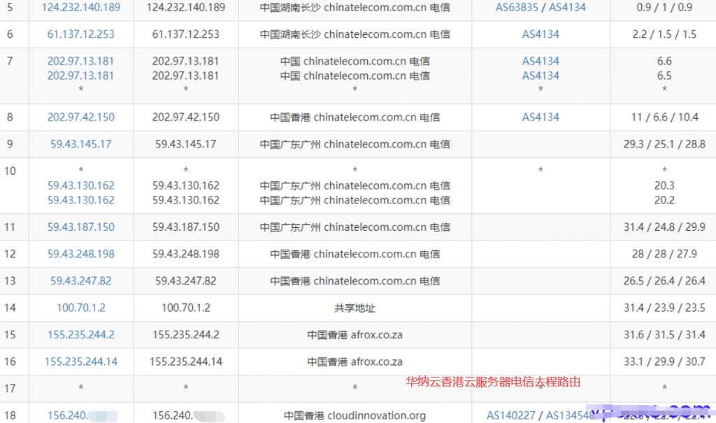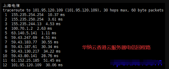 华纳云香港云服务器到国内的延迟40多ms,延迟很低,是三网直连的,下面看具体的三网路由: