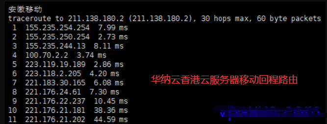 华纳云香港云服务器电信去程在省内就开始走59.43的路由,回程也走59.43开头的路由,标准的电信CN2 GIA线路,电信延迟才33ms。联通往返也是直连,去程延迟甚至才25ms。移动去程回程也都是直连,延迟稍高,也只是刚过40ms。华纳云香港云服务器三网路由都非常好。