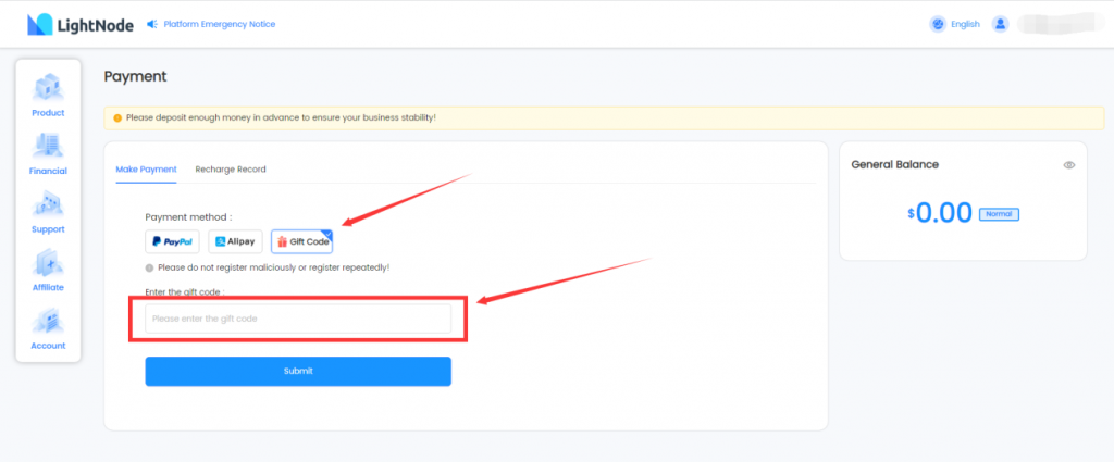 - 点击Gift Code 后在下方输入Gift Code就可以享受折扣啦!