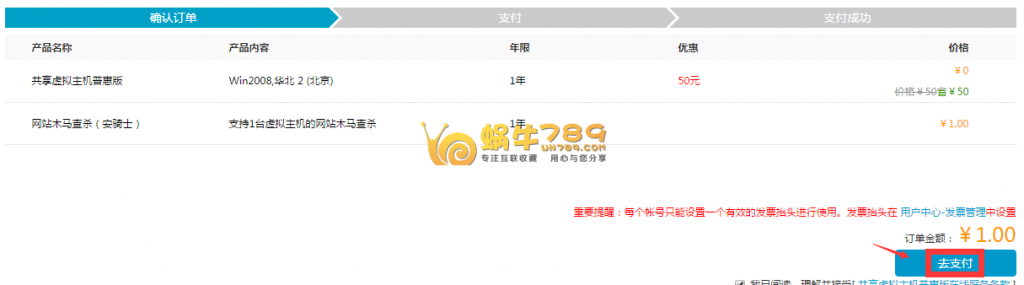 3、最后选择支付方式,支付一元即可完成购买。