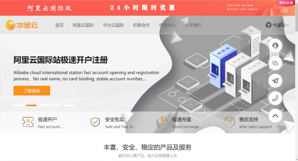 华圣云隶属于 華聖科技有限公司(HuaSaint)是亚太地区领先的互联网IT产品服务商,专业为企业客户提供云计算数据中心基础服务、互联网行业解决方案, 云服务器、云计算、云安全技术研发等产品和服务,自2018年起,加入Alibaba Cloud(阿里云国际站)经销商合作伙伴,与阿里云携手共同为企业与个人开发者提供上云协助,共同分享云上经验,给客户带来了很多帮助!