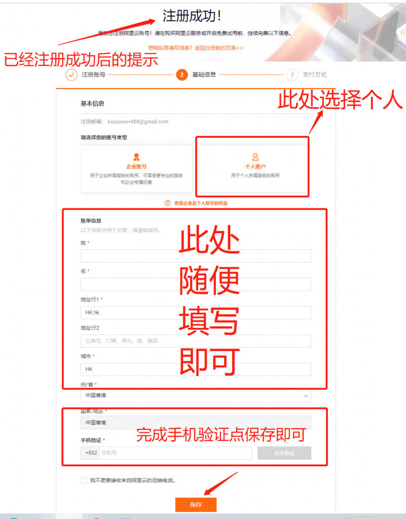 三、注意地区不要随便选,如果准备了香港手机号就选香港,美国就选美国,否则过不了验证。