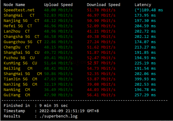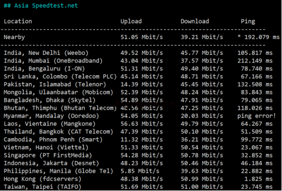 从测试效果来看,我本地延迟在54ms左右,这个延迟还是不错的,可以看到网络是相当稳定的,都没有丢包的情况,和内地华北、华中、华南的内地机房比起来也是相差无几了。