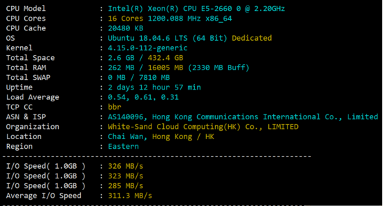 | HKD4 | E5-2660 | 32G DDR3 | 500G SSD | 200M | 3个 | 4920 | 4433 |
