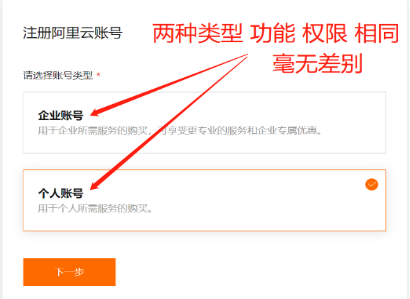 账户类型按照实际情况进行选择(无需纠结,企业与个人功能权限相同)