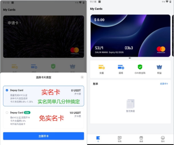 3.开卡有实名开卡和免实名开卡两种形式。实名开卡免费。免实名开发卡收10美金开卡费(结合实际情况选择用途),先用币充值10刀,然后就能开卡了、