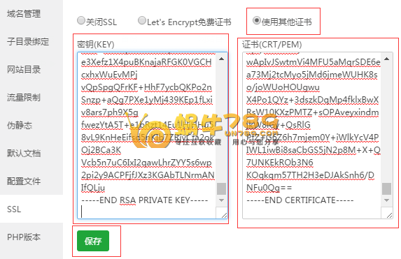 7、安装自己申请的证书。下图是以宝塔面板为例。