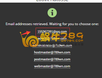 获取成功后,蜗牛选择了自己的域名注册邮箱进行验证,点击你选择的邮箱即可。