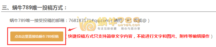 3、我们可以用有快捷投稿。下图是蜗牛在自己的投稿页面添加了一个快速投稿连接。大家可以到“我要投稿”页面进行体验。