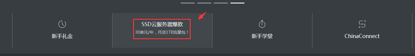 2、注册帐号后进入阿里云国际版首页,点击“SSD云服务器爆款”进入活动页面。