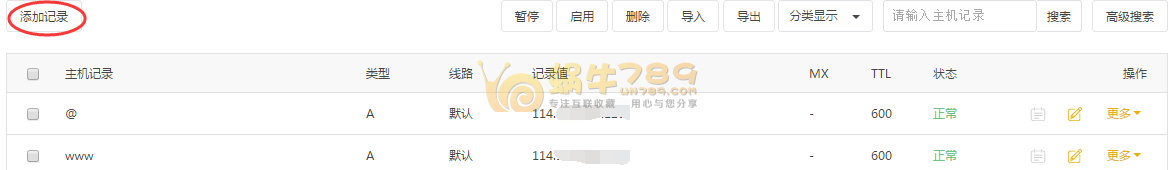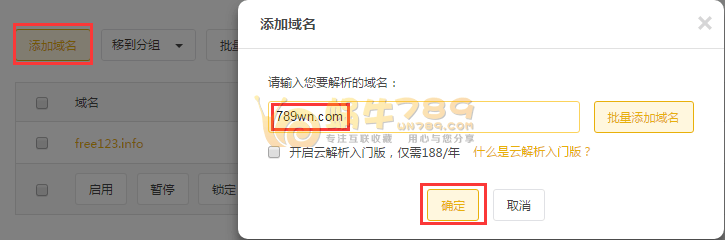 1、注册账号后完成验证并登录,进入域名云解析页面添加需要申请免费SSL证书的域名。