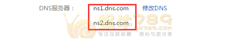 2、到域名注册商修改域名DNS服务器地址为“ns1.dns.com、ns2.dns.com”。