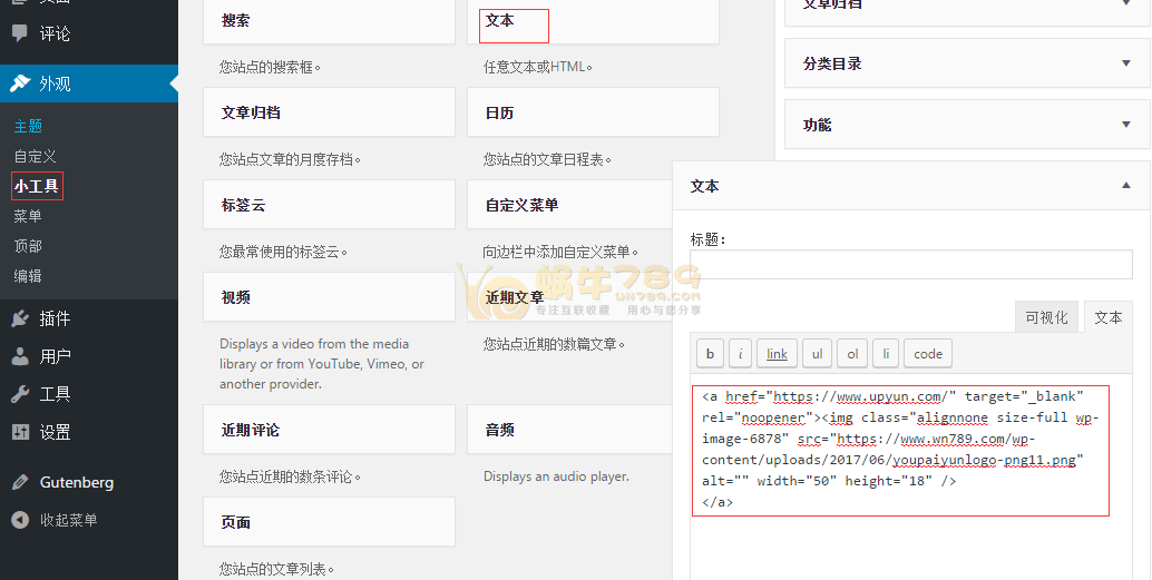 <a href="https://www.upyun.com/" target="_blank" rel="noopener"><img class="alignnone size-full wp-image-6878" src="https://www.wn789.com/wp-content/uploads/2017/06/youpaiyunlogo-png11.png" alt="" width="50" height="18" /> </a>不知道修改哪个文件添加的,如果你是WordPress博客,可以通过小工具,添加一个文本侧边栏,然后把代码复制上去就OK了。
