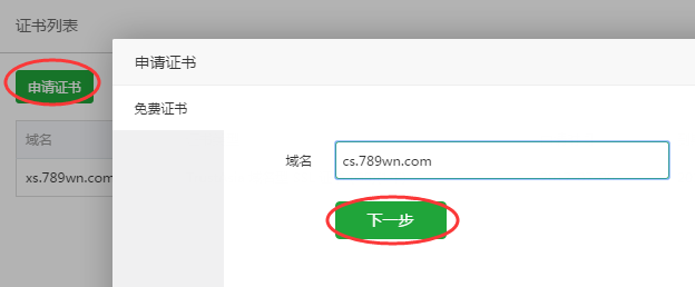首先在宝塔首页登录账号进入后台,然后点击“申请证书”,并填写自己需要申请的域名。