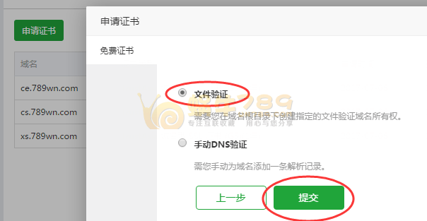 然后选择验证方式,可以选择文件验证,也可以选择DNS验证。蜗牛选择的是文件验证。