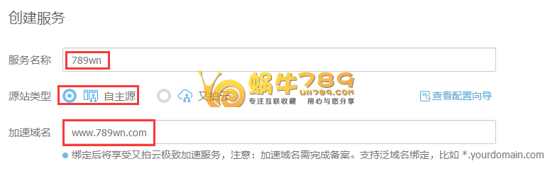 1、点击这里开始创建全网加速服务。并按要求如下面图片进行设置。
