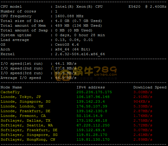5、蜗牛申请的免费VPS系统信息/IO读写/下载速度测试。