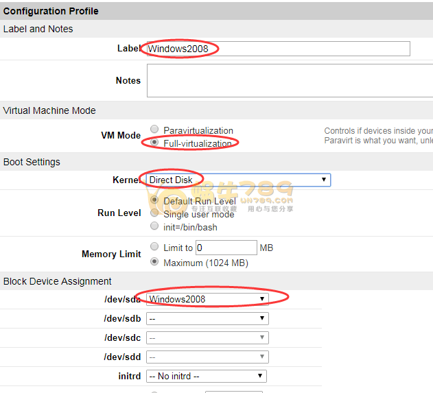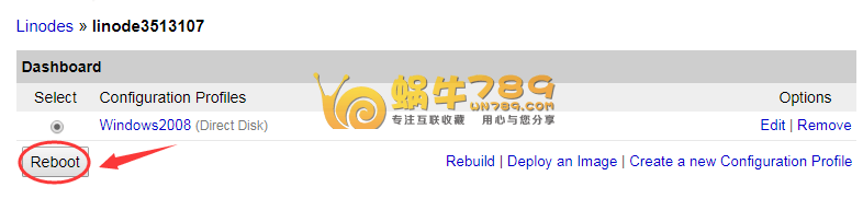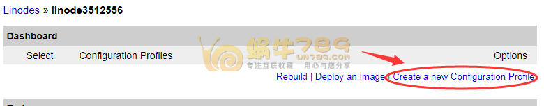 3、然后再回到VPS管理页面。点击“Create a new Configuration Profile”创建配置文件引导磁盘。