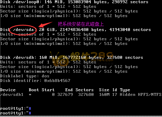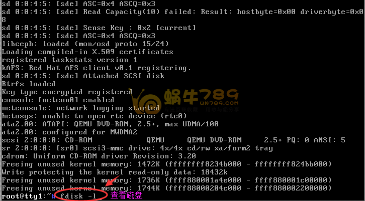 7、控制台显示如下图。我们可以输入“fdisk -l”查看磁盘。